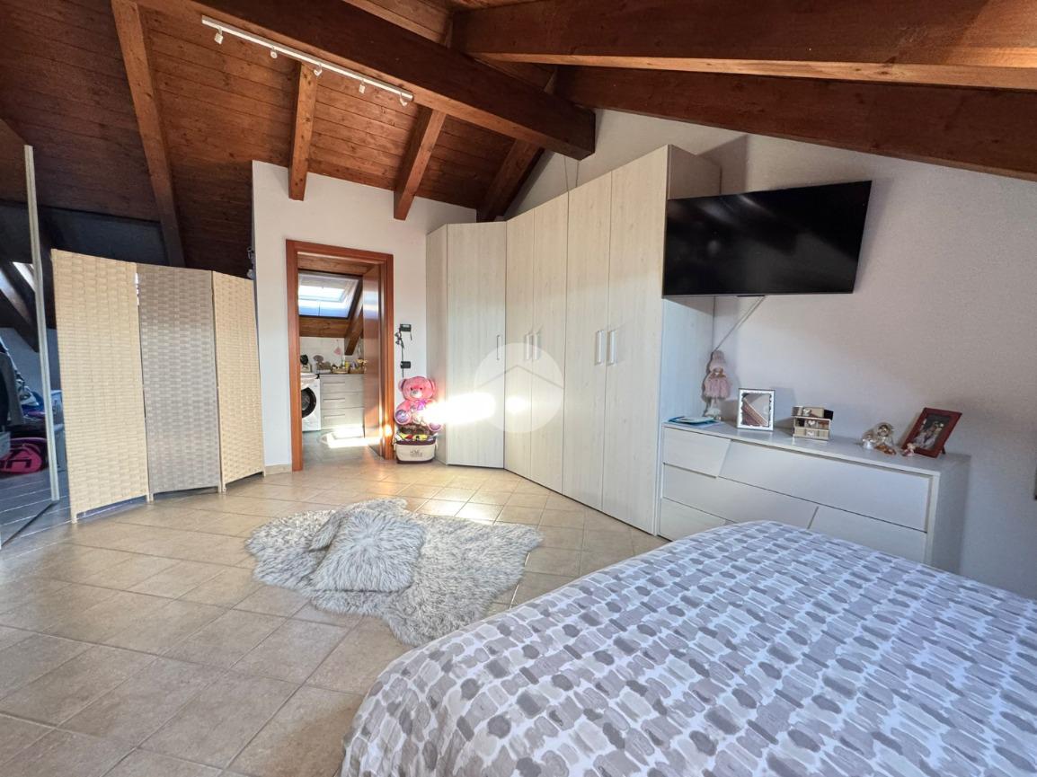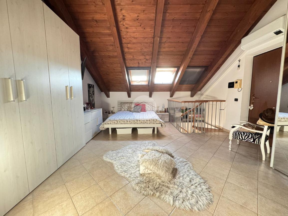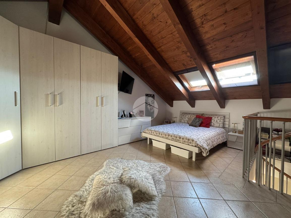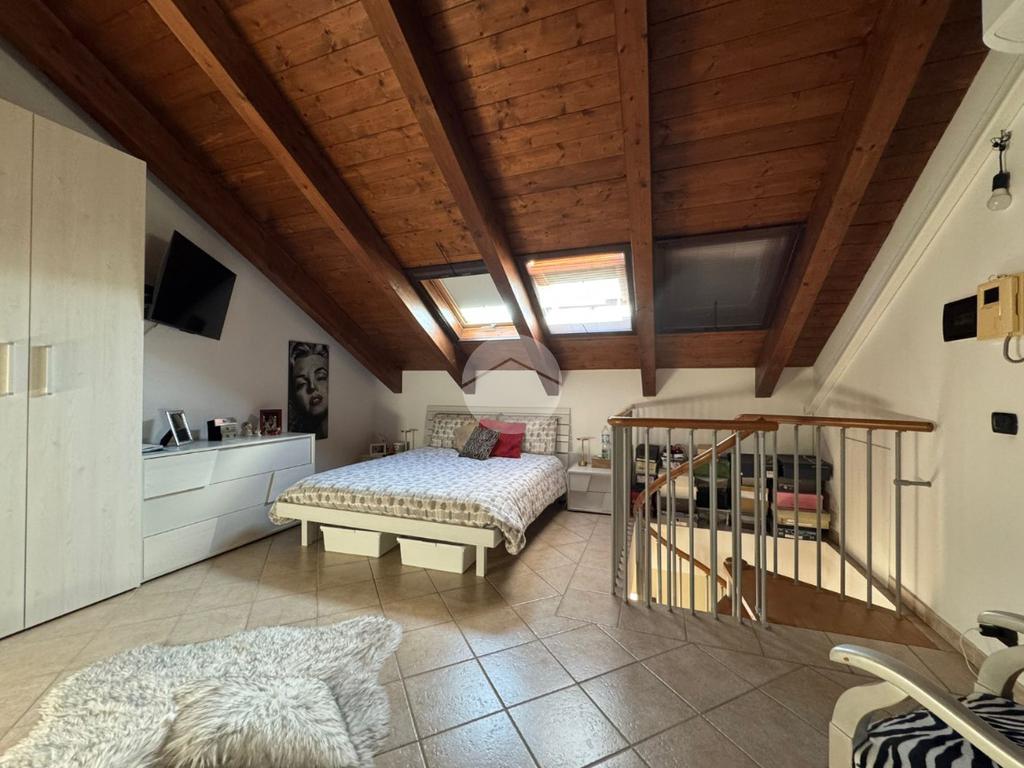 Tramite sia la scala a chiocciola interna, sia il vano scala esterno, si può accedere al piano mansardato composto da un'ampia camera matrimoniale e bagno.
