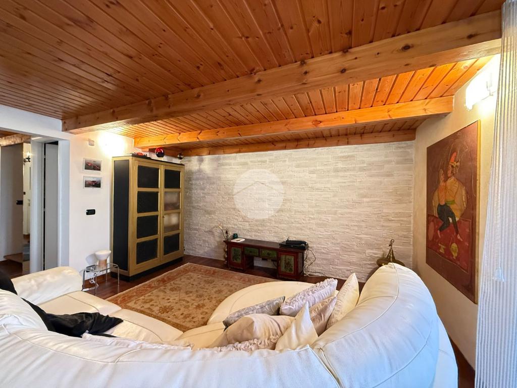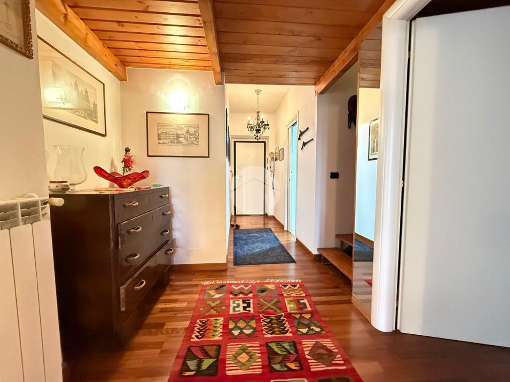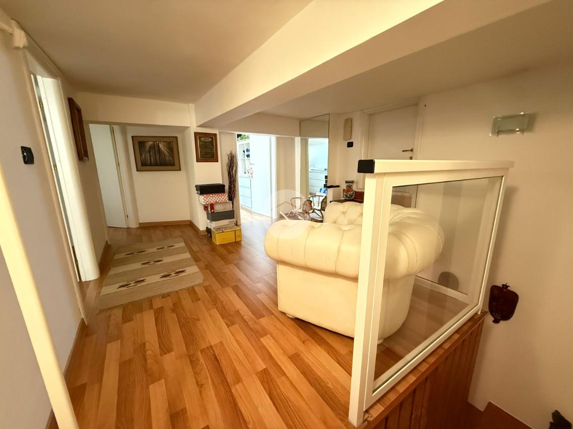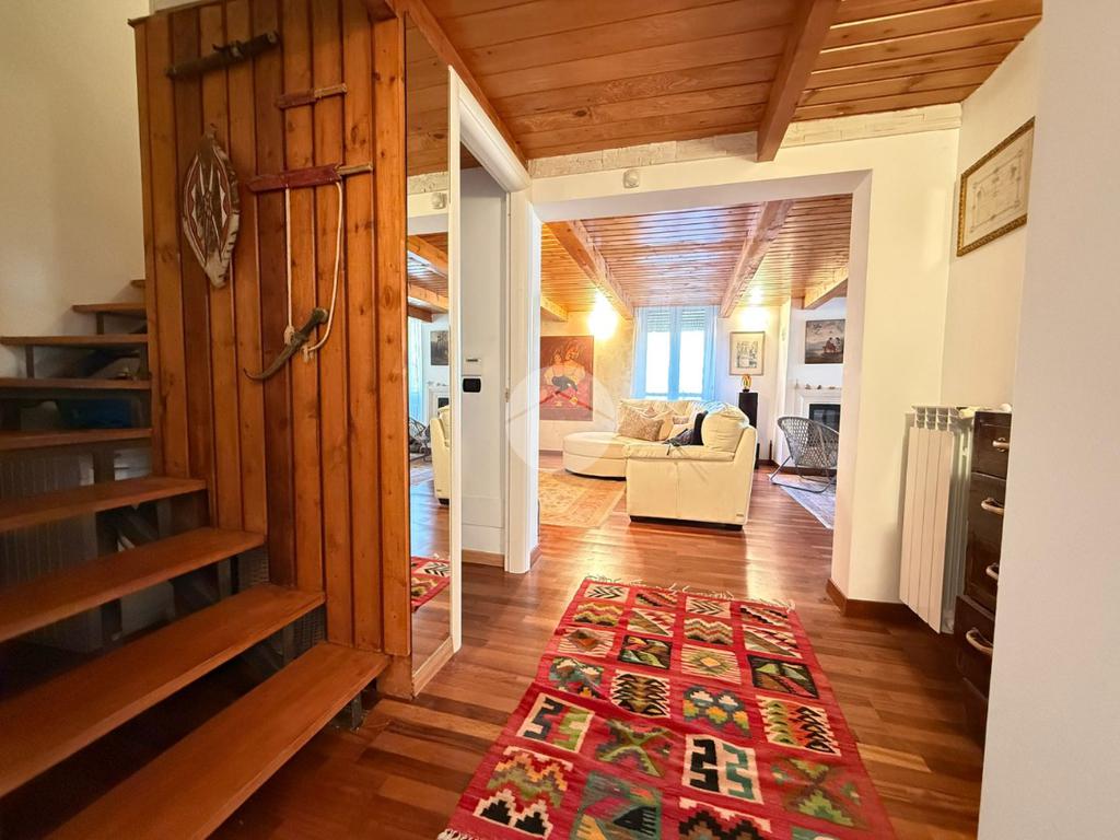 L'alloggio è composto da ingresso sul disimpegno, ampio soggiorno con camino, cucina abitabile, balcone, bagno e rispostiglio. Tramite la scala in legno si accede al piano soppalcato composto da due camere da letto e una cabina armadio.