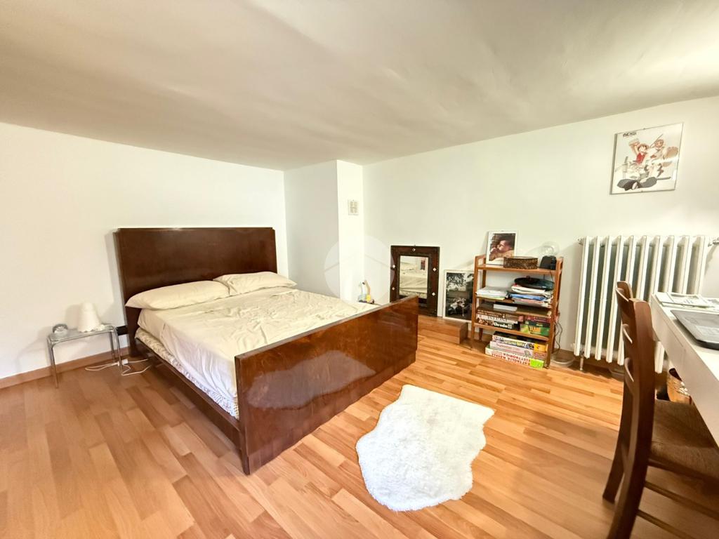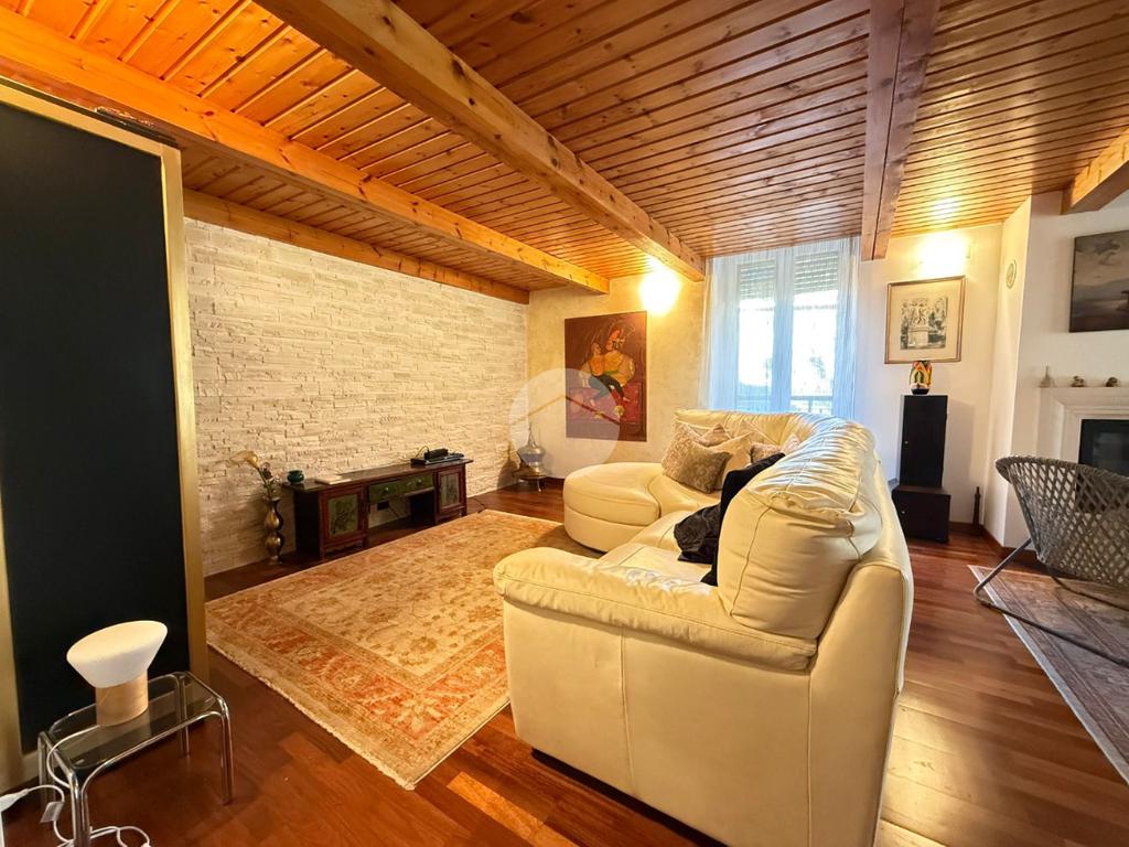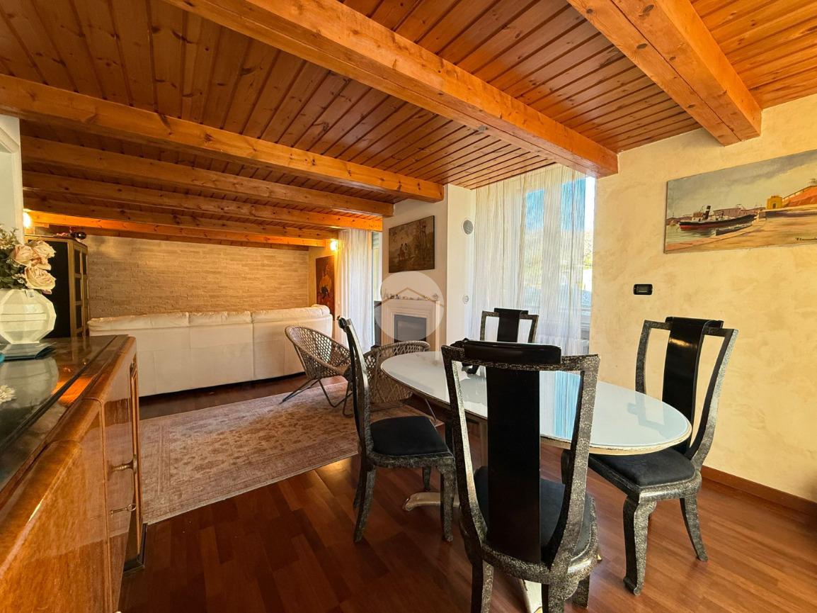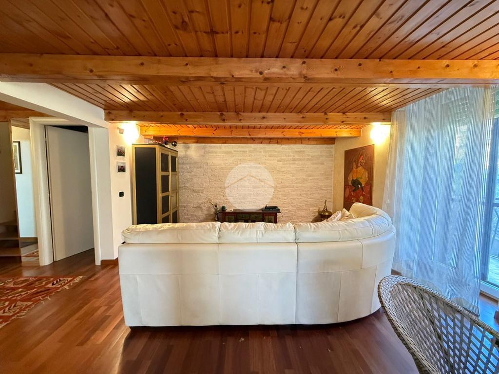 L'alloggio è composto da ingresso sul disimpegno, ampio soggiorno con camino, cucina abitabile, balcone, bagno e rispostiglio. Tramite la scala in legno si accede al piano soppalcato composto da due camere da letto e una cabina armadio.