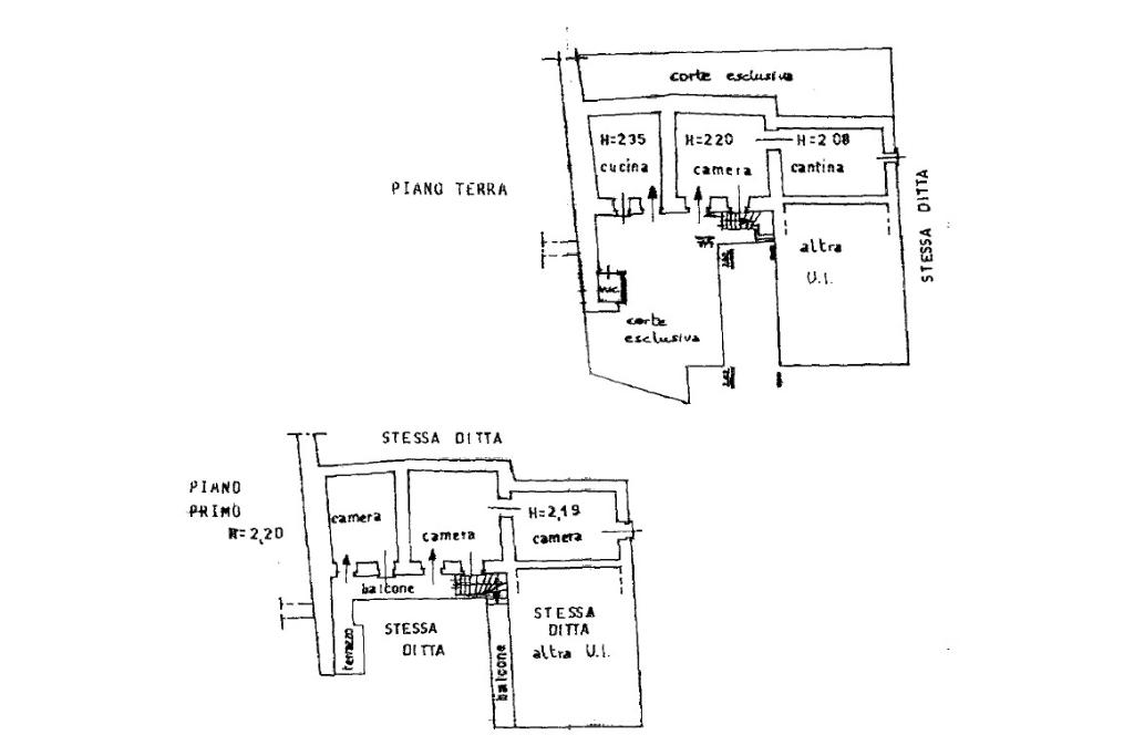 Il primo immobile, allo stato originale, è composto al piano terra da cucina, una camera, cantina e bagno esterno, tramite scala esterna si raggiunge il piano primo composto da tre camere da letto.