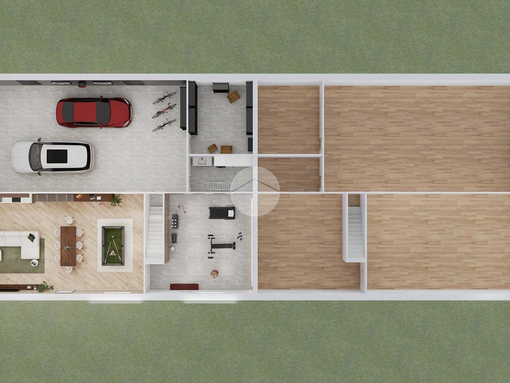 Ogni porzione è di circa 250 mq, la parte abitabile di circa 100 mq, è composta da ingresso tramite porticato privato sulla cucina, soggiorno, due camere e bagno, completa la proprietà la mansarda non abitabile e l'ampio locale seminterrato utilizzabile come autorimessa e per locali accessori.