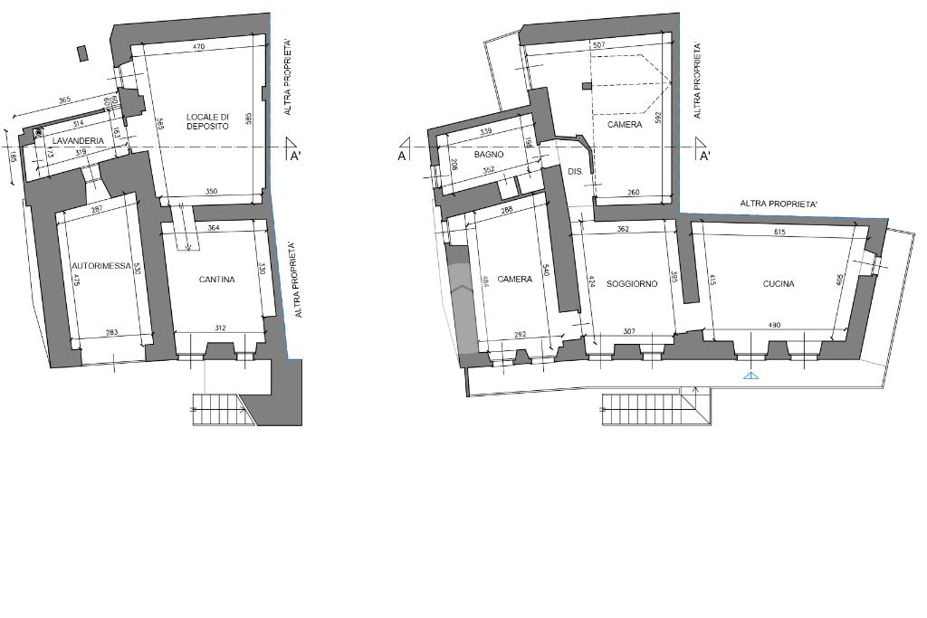 La prima porzione completamente ristrutturata nel 2011, è composta al primo piano da ampia cucina abitabile con balcone, soggiorno, due camere da letto, disimpegno e bagno. Al piano terra troviamo una spaziosa zona tavernetta, caratterizzata dalle volte in mattoni pieni, la lavanderia ed il box auto.