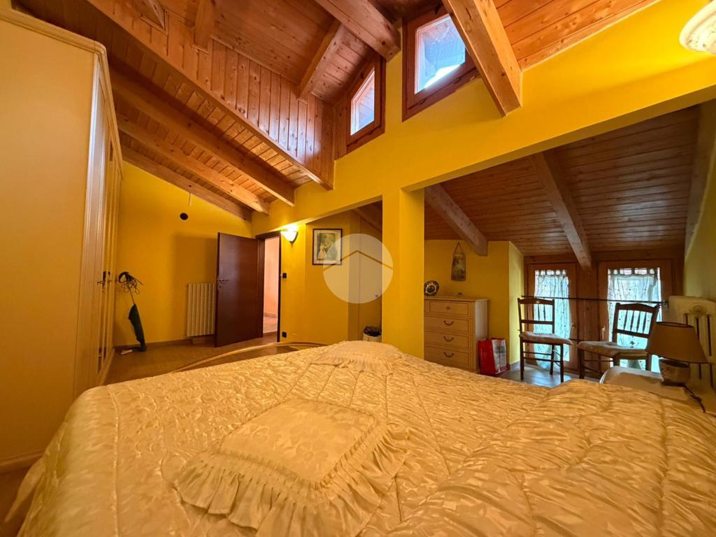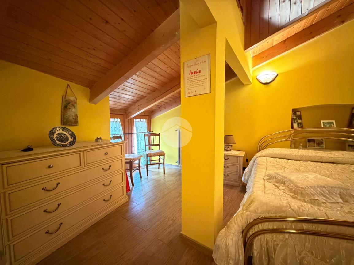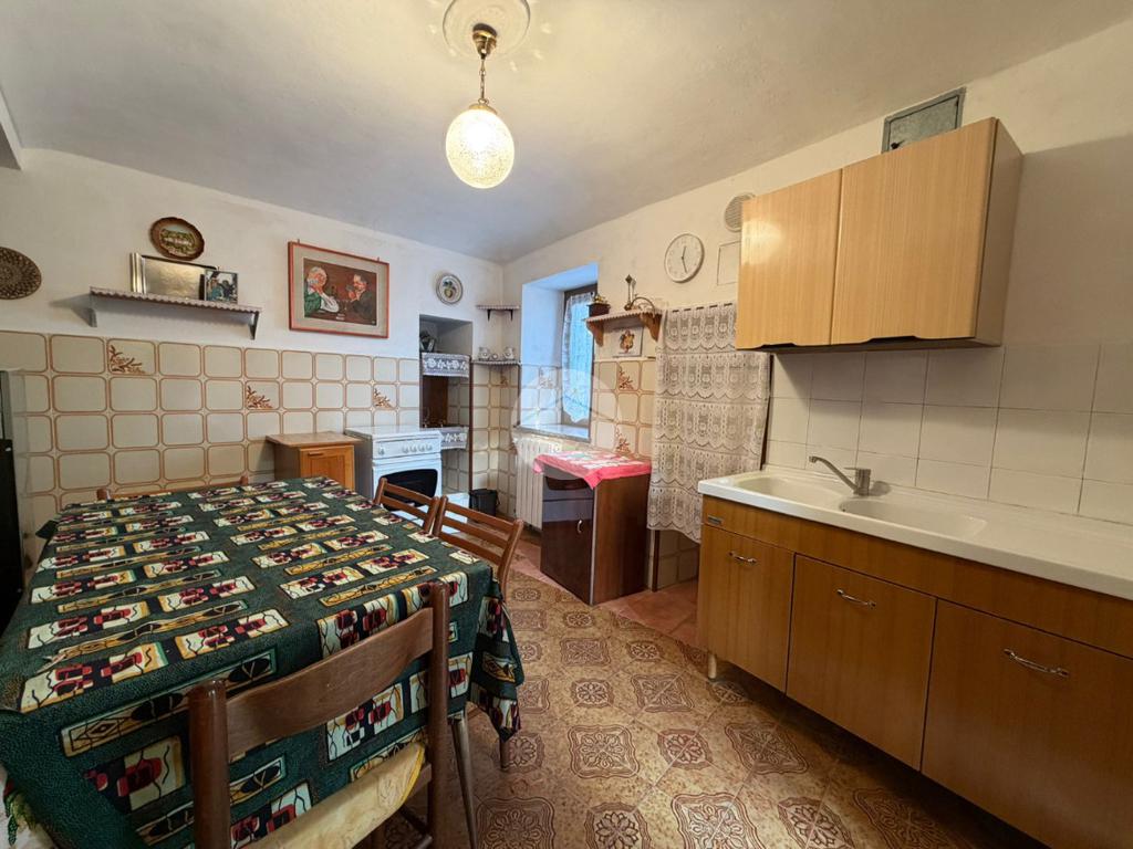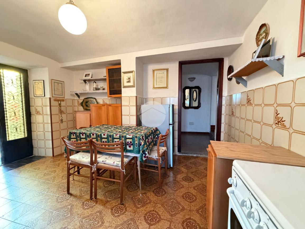 La seconda porzione è composta al piano terra da soggiorno, cucina abitabile e bagno. Tramite scala sia esterna, sia interna a chiocciola, si accede al piano superiore composto da due camere da letto con balcone con vista panoramica.